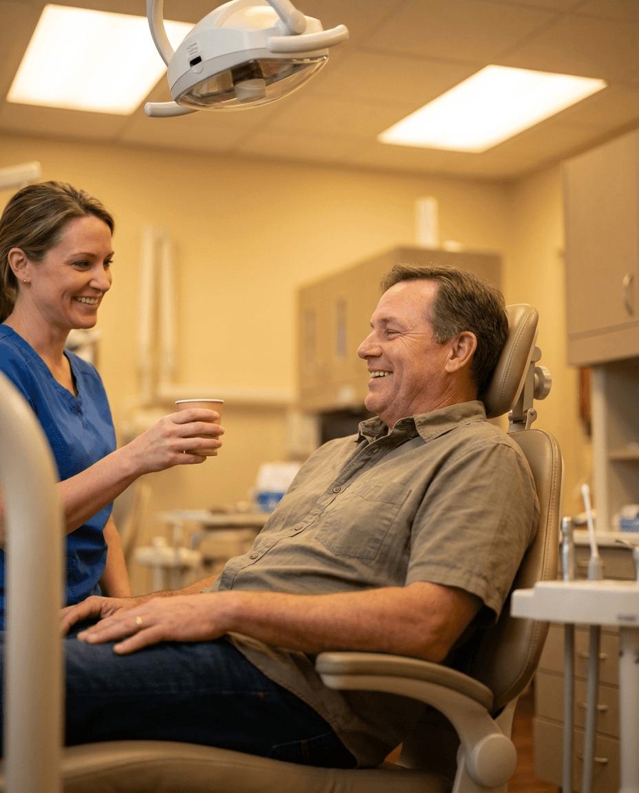 A: Start with a low-stakes consultation — no treatment, just a conversation. Tell the dental team about your anxiety upfront. Many practices offer nitrous oxide or oral sedation for anxious patients, and simply knowing your options before the appointment can significantly lower anticipatory fear.